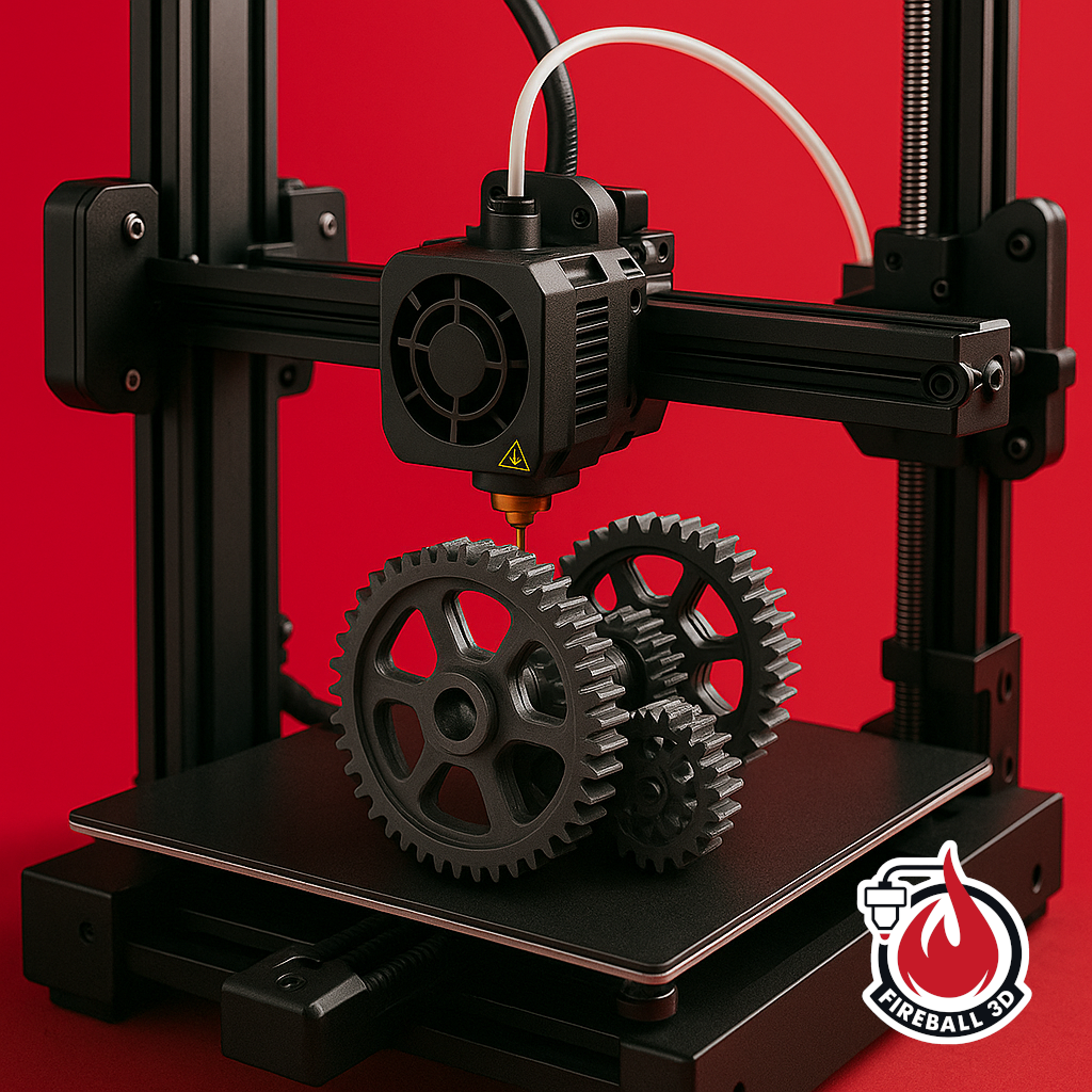 Fireball Gear - Brand Logo - Flame & Gear - Black & Red - FlexFit Cap